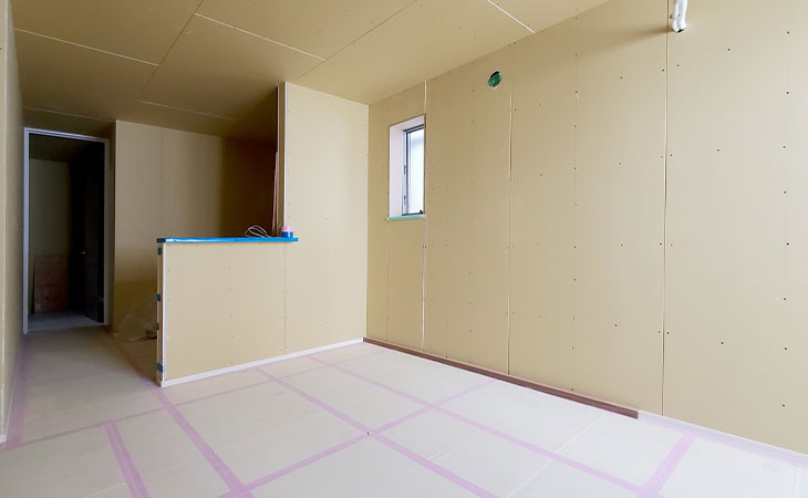 ボード間の継ぎ目を丁寧に処理することで、壁紙を施工後の美観を損なう段差や凹凸を防ぎます。
