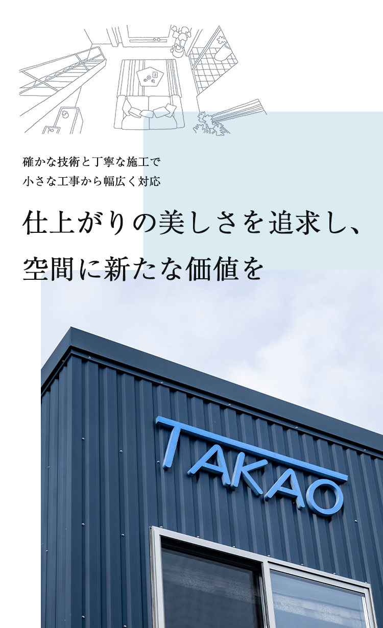 「高雄」では、内装工事のプロフェッショナルを目指す方を募集しています。経験者はもちろん、未経験からスキルを身につけたい方も歓迎します。自社職人として技術を磨き、お客様に喜ばれる空間づくりに携わってみませんか?
