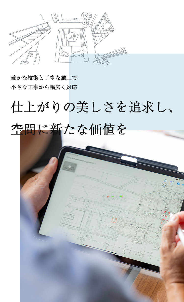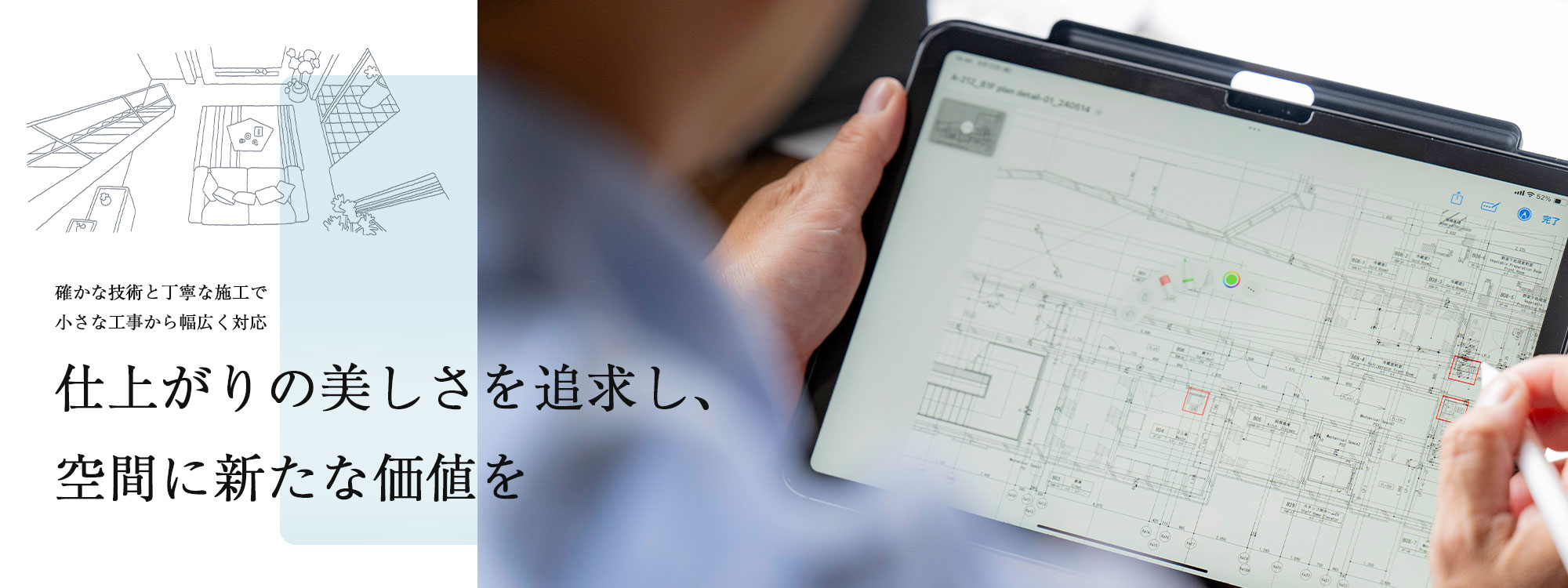 お客様の幅広いニーズにお応えし、最適な提案と確かな施工技術のもと、満足度の高い工事をご提供します。