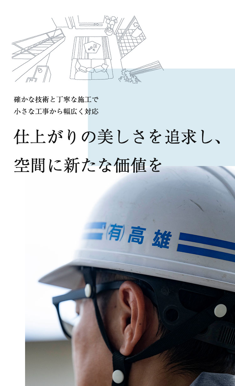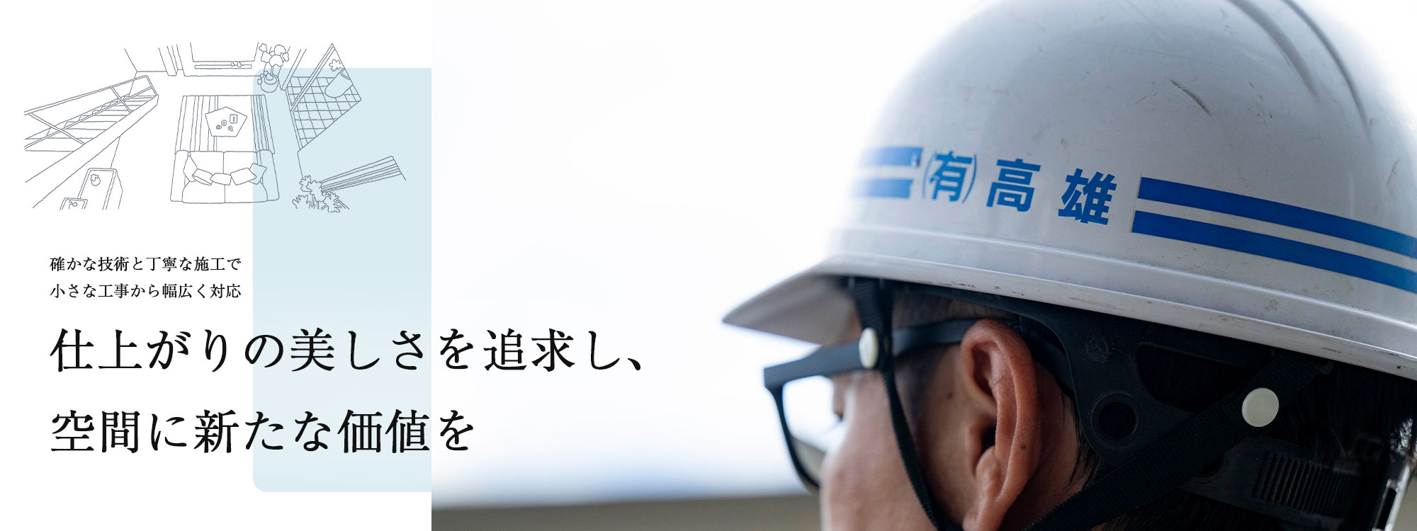 「高雄」では、創業以来「納期遵守」を徹底しています。なおかつ、限られた工期内でも決して手を抜くことなく、どの現場においても細部まで丁寧な施工を行っています。