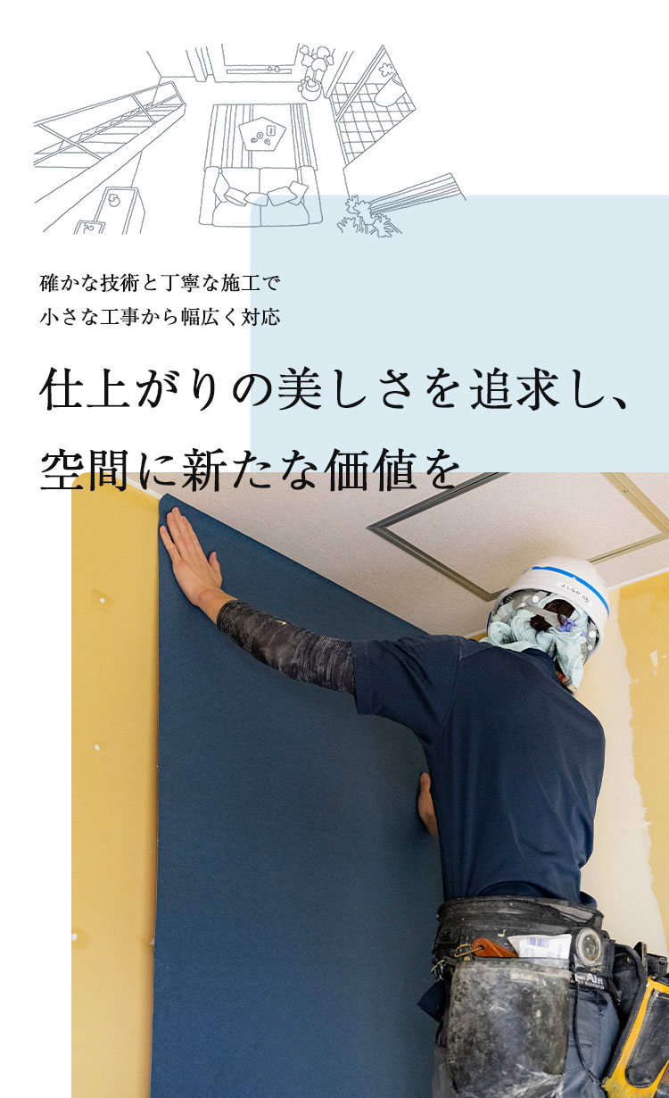 私たちの仕事は、内装仕上げを通して、空間に安心と心地よさをお届けすることです。